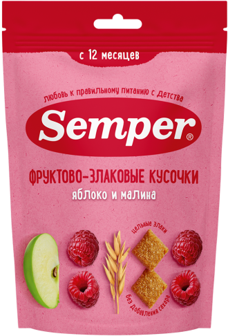 Игра на площадке, прогулка в парке, перекус дома – в любом приключении фруктово-злаковые кусочки Semper станут отличным дополнением. Продукт представляет собой индивидуально упакованные кусочки – можно съесть все сразу, а можно и разделить на несколько раз.